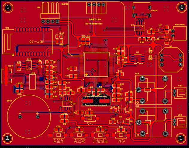 回答:目前这块PCB除了语音模块均能正常使用,代码调试工作正在不断推进。而语音模块遇到的问题是,我发现使用时喇叭有很大的噪音,原本的声音被覆盖,但是隐约可以听见原本正确的声音。因此我怀疑是PCB设计时对模拟信号线的处理不够到位,以及电源输入电压不够稳定。现在已经重新设计了一块语音模块PCB,在这块PCB上着重对模拟信号线进行了防干扰处理,且换用了更稳定的电源,目前还没有来得及对这块新的PCB进行焊接与测试,如果最后这块PCB能实现功能,那么在设计第二版血压计PCB时便可沿用此PCB的设计方法。由于经验不足,在设计硬件时其实出现了不少问题,首先在电池接口处,我采用的是XH2.54接口,但是我将其封装从立式变为卧式时,没有注意到它的引脚交换了,导致电源反接。好在在电路设计时有添加防反接二极管,没有损坏电子元件。为了解决这个问题,我将该接口接在了背面,现在已经可以正常使用。然后便是芯片虚焊的问题,由于STM32F407VE芯片引脚较多较密,焊接时容易出现短路与虚焊,但在使用万用表排查后这些问题得到了解决。