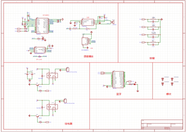 主控芯片选择STM32F407VE,语音芯片选择JQ8900S,气压传感器选择XGZP6847A传感器,显示模块选择0.96寸OLED,蓝牙模块选择JDY-33,充气泵选择370小气泵,泄压阀选择QE-01排气阀,继电器选择SRD-03V继电器,剩余还有类似8002A功放芯片,ME6212C33M5G线性稳压器等电子元器件不再一一列出。
