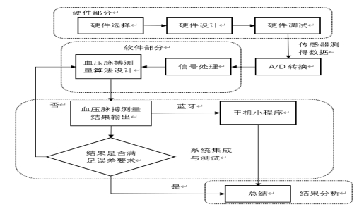 (1)将硬件与软件相结合,完成血压脉搏计的整体集成。