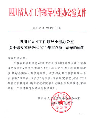 Sichuan Provincial Talent Work Leading Group Document No. 18 was announced recently. The doctoral workstation of Leshan High-tech Zone led by Associate Professor Tang Yang and the "China-Germany Science and Technology Promotion Center" undertaken by our college have become "Key Projects of Provincial-University Cooperation in 2019". The project is jointly implemented by Southwest Jiaotong University and Leshan High-tech Zone, and the relevant doctoral research teams selected by the universities are stationed in local enterprises to carry out intellectual cooperation. The 2019 plan relies on the "Key Technology Promotion Center" to increase exchanges and training of talents at home and abroad!