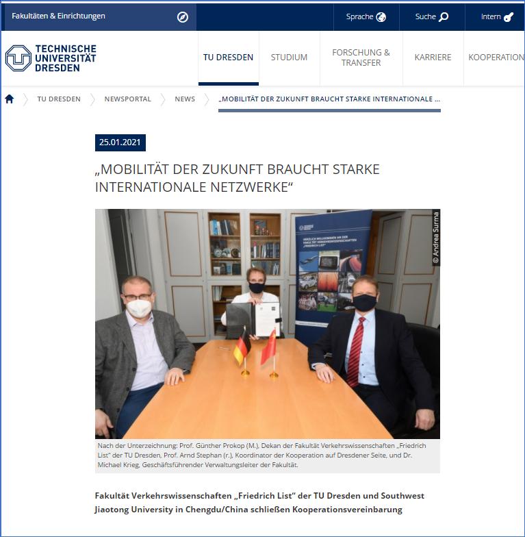 Despite of disruptions and inconveniences brought about by the Pandemic, the University initiated a series of changes to the traditional mode of international exchanges and explored different ways such as online meetings to continue and maintain international cooperation. Since September 2020, SWJTU and TU Dresden teams have stepped up their efforts in promoting the cooperation between the two universities and bringing benefits to both the faculty and students. After the signing of the MOU, the two universities will keep on advancing exchanges and implementing the programs.