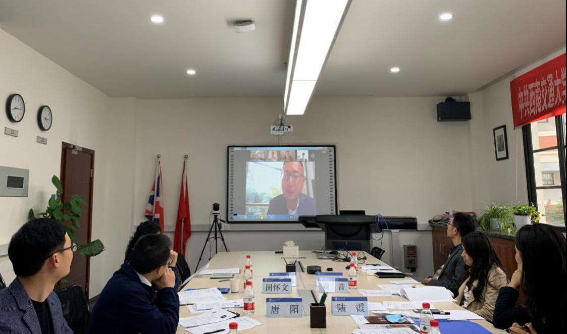 Liu Xiaobo, Dean of the School of Transportation and Logistics, speaks at the online meeting.