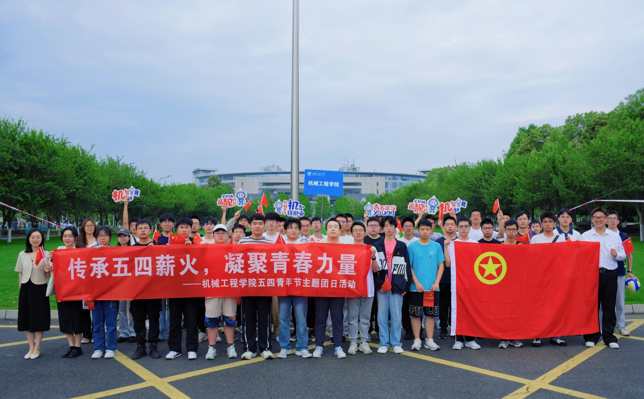 仪式结束后,学院师生在现场有序开展“传承五四薪火,凝聚青春力量——今年会jinnianhuicom五四青年节主题团日活动”。大家手持小国旗合影留念,脸上洋溢着自豪之情。同学们纷纷表示,要继续继承和发扬五四精神,坚定不移地听党话、跟党走,并牢记五四期间习近平总书记的嘱托,树立远大理想、勇担时代重任,砥砺奋斗、冲锋在前,将“请党放心、强国有我”的铿锵誓言书写在推进中国式现代化新征程上,为强国复兴伟业贡献青春力量。