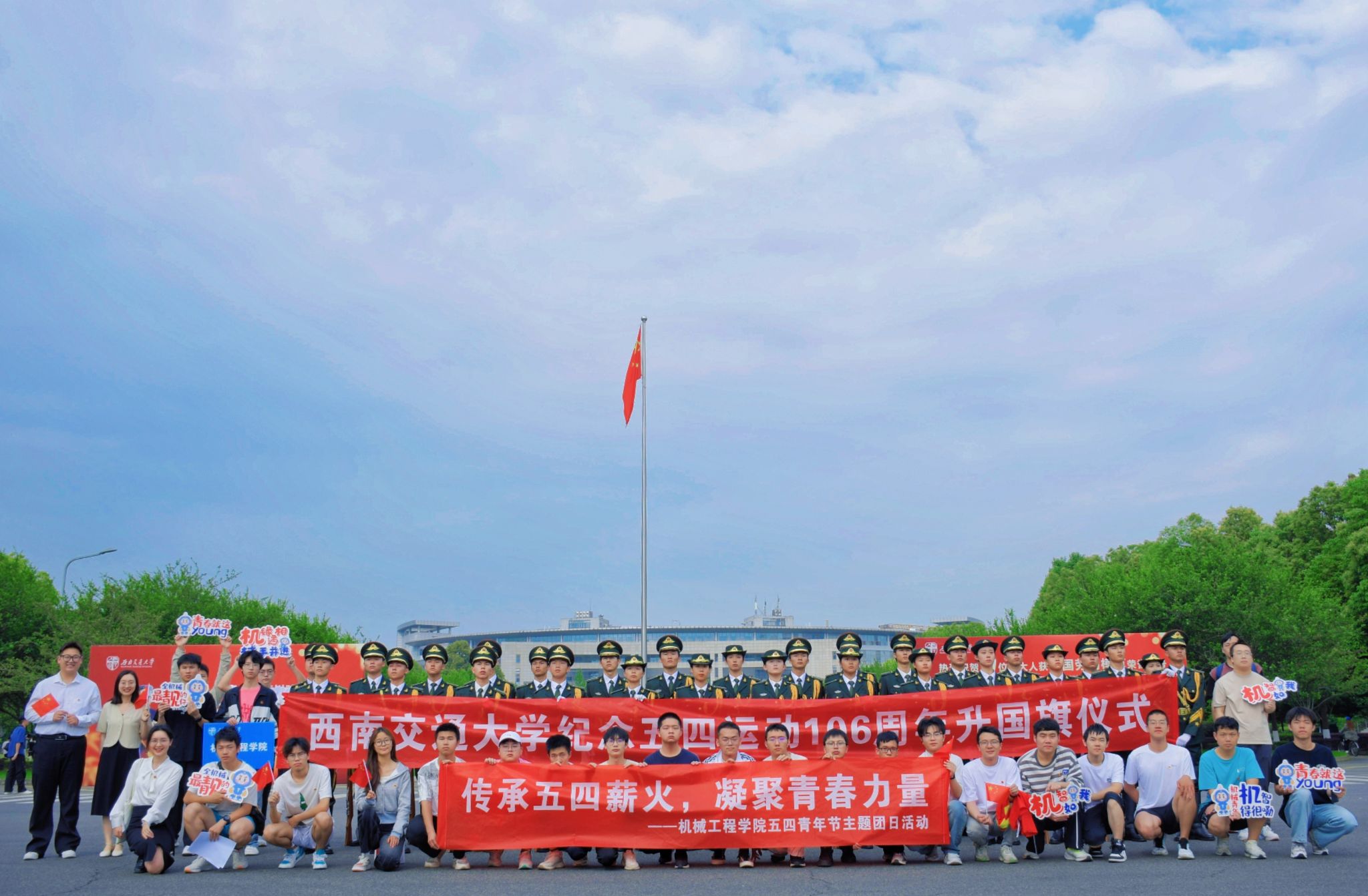 为深入学习贯彻习近平新时代中国特色社会主义思想,认真学习宣传贯彻党的二十大和二十届二中、三中全会精神,在2025年五四青年节到来之际,学校于 5 月 4 日上午在犀浦校区东门国旗台举办升国旗仪式,学院师生积极响应,共同见证这一庄严肃穆的时刻。