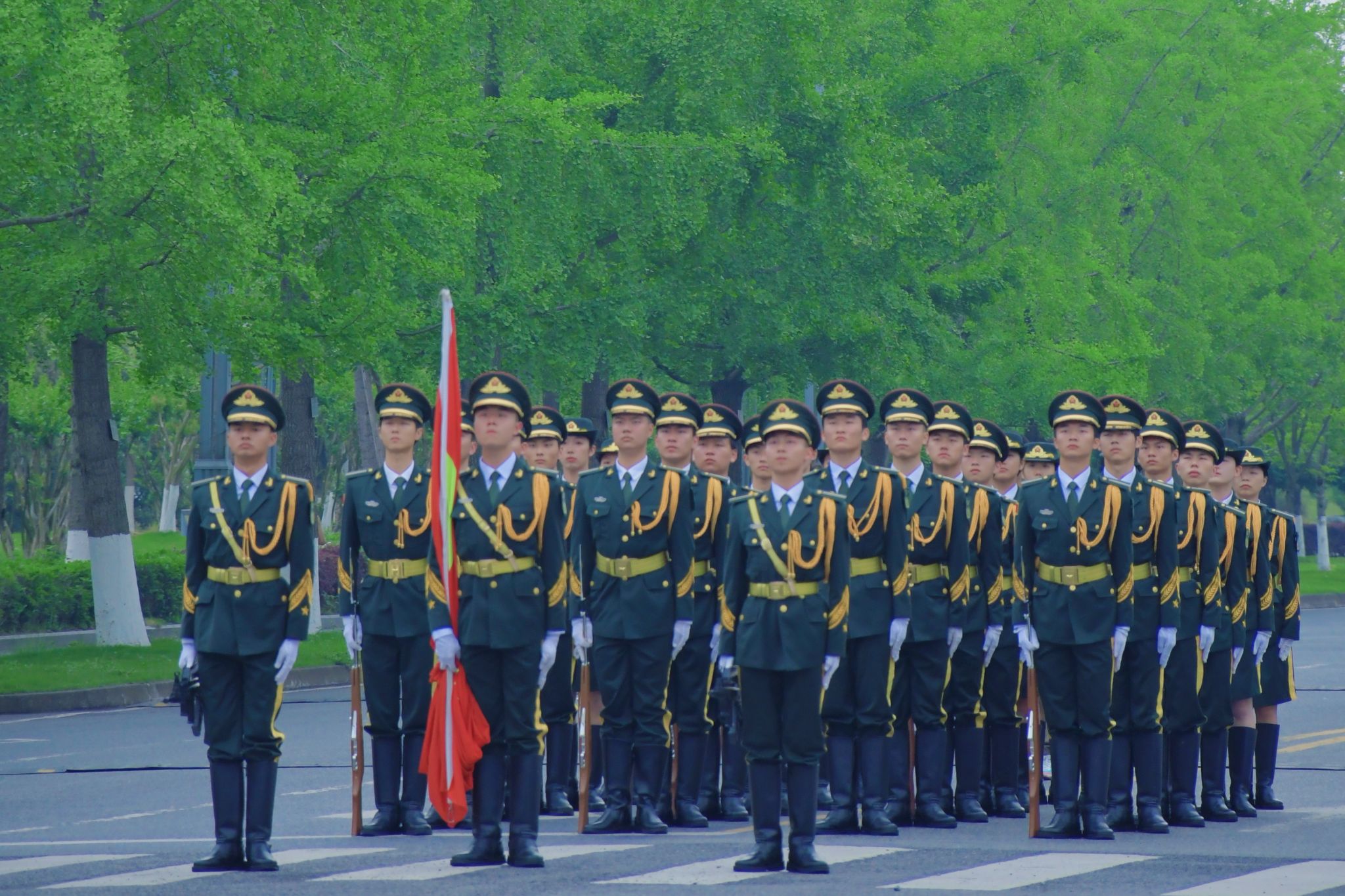 上午8时半,旭日东升,晨光绚丽,升旗仪式正式开始。国旗班成员步伐铿锵、姿态昂扬,护送国旗缓缓入场。随着庄严的《义勇军进行曲》奏响,激昂的旋律回荡在校园上空。升旗手将国旗奋力抛出,五星红旗在微风中舒展身姿,冉冉升起。全体师生整齐肃立,齐声高歌,目光如炬地凝望着五星红旗向着朝阳升起,感受着激荡人心的爱国之情,汇聚成团结奋斗的磅礴力量。