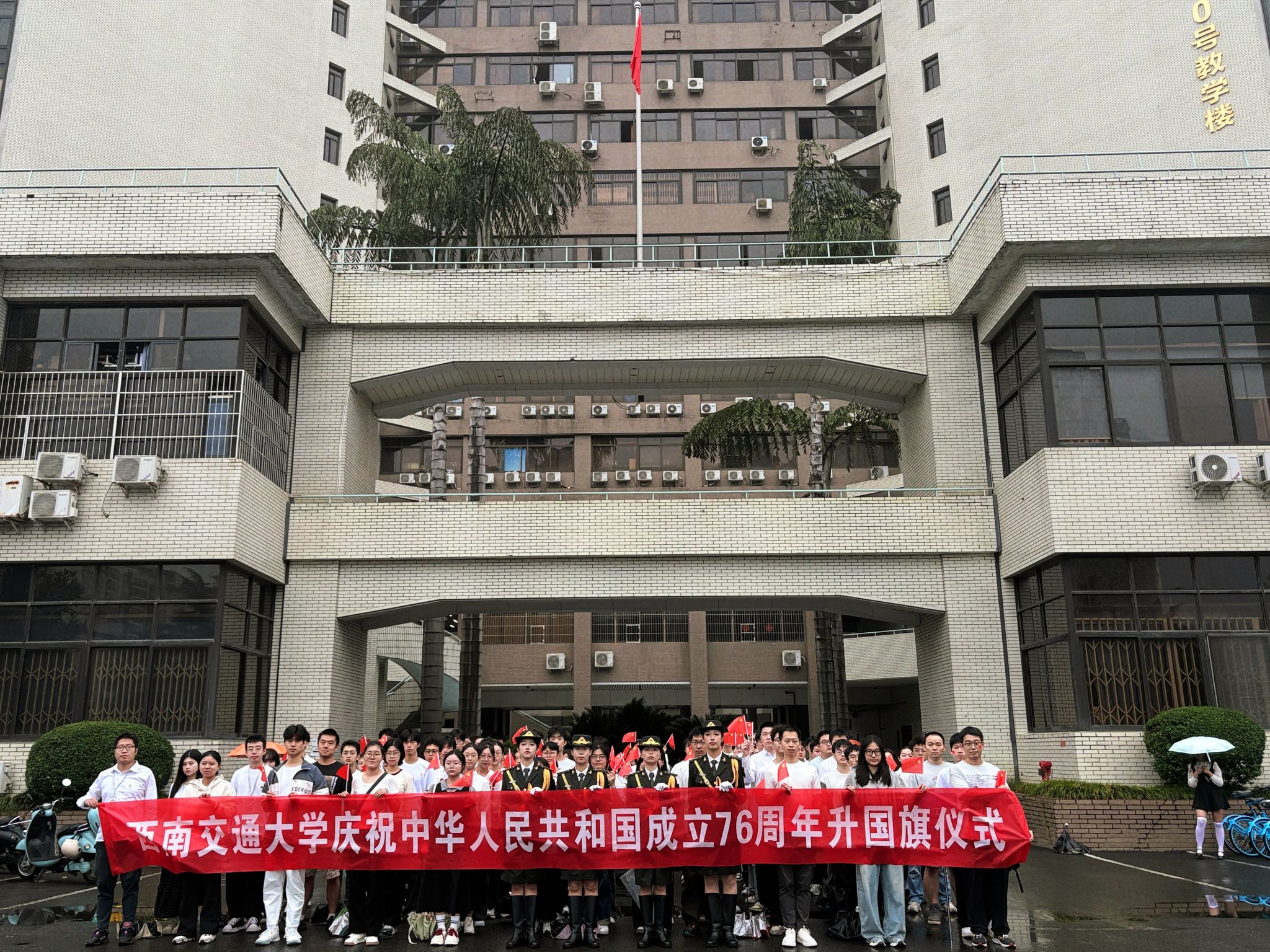 为热烈庆祝中华人民共和国成立76周年,深入学习贯彻习近平总书记在纪念中国人民抗日战争暨世界反法西斯战争胜利80周年重要讲话精神,进一步加强新时代爱国主义教育,激发广大师生的爱党爱国爱校热情,10月1日上午8:30,学校在犀浦校区东门国旗台和九里校区南门0号教学楼国旗台同步举行升国旗仪式。今年会jinnianhuicom党委副书记沙晓雪、团委书记何蕊芯与青年教师代表到场,共同见证了这一庄严时刻。