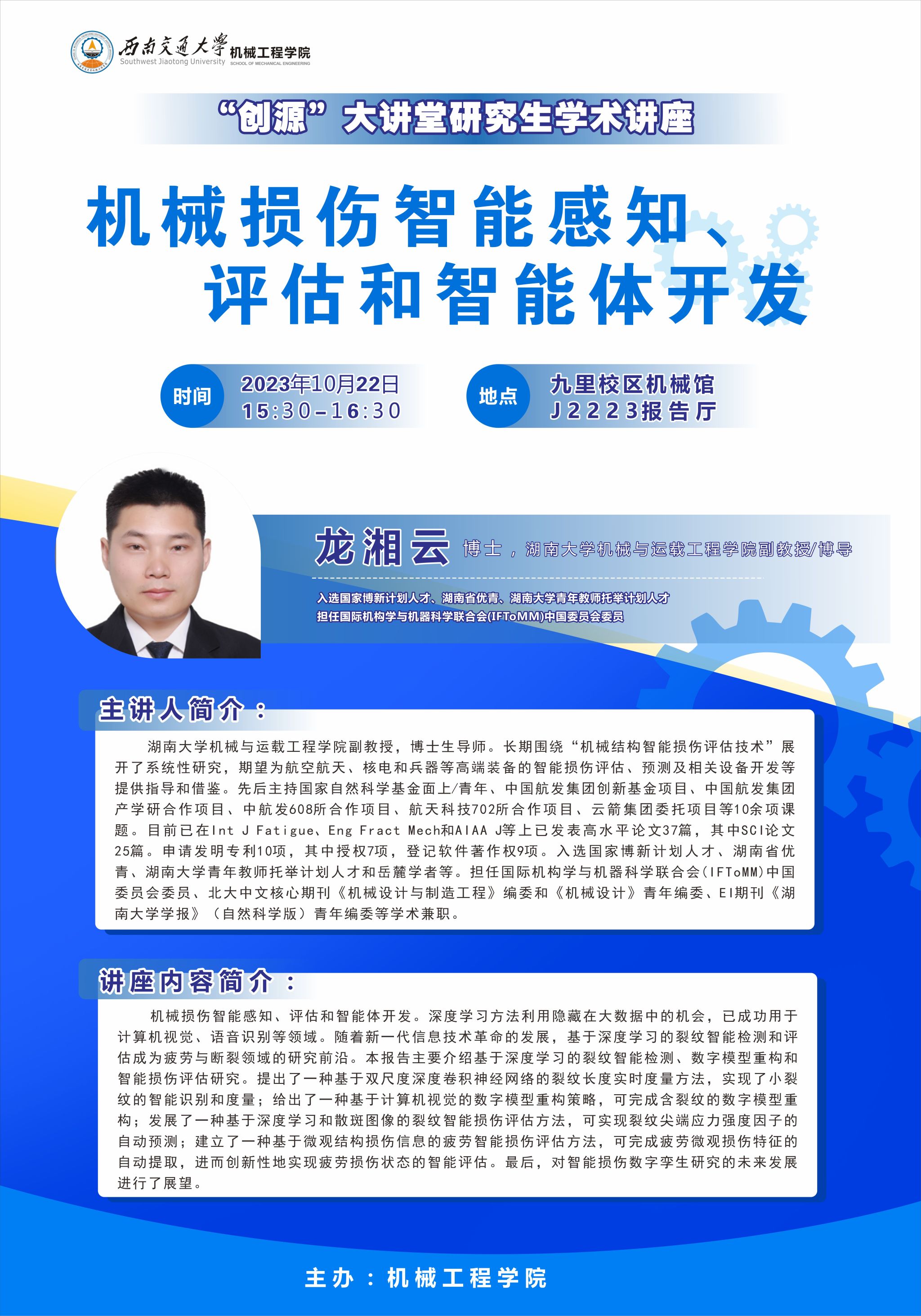 讲座地点:九里校区机械馆 J2223报告厅