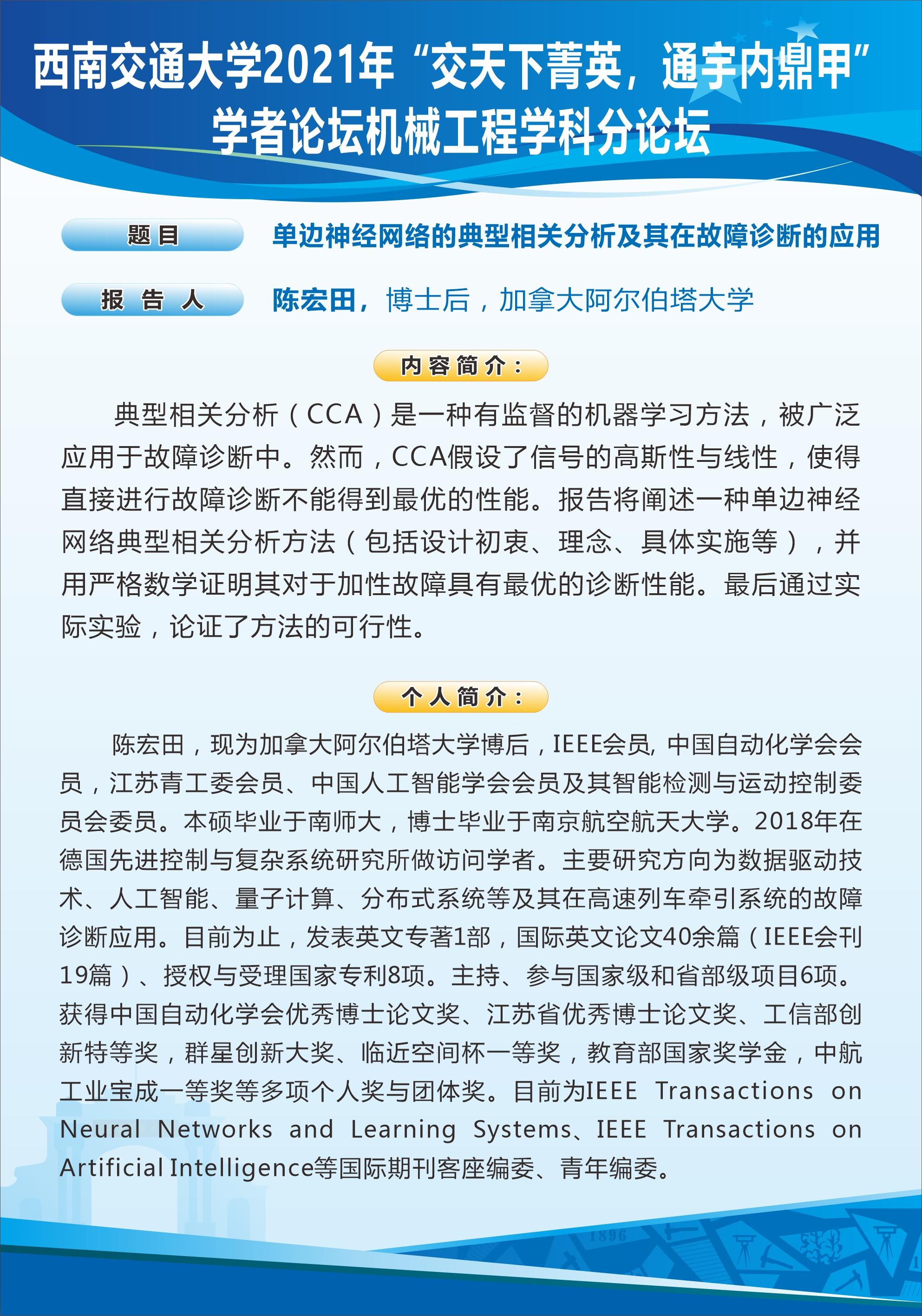 金年金字招牌诚信至上2021年“交天下菁英,通宇内鼎甲” 学者论坛机械工程学科分论坛
